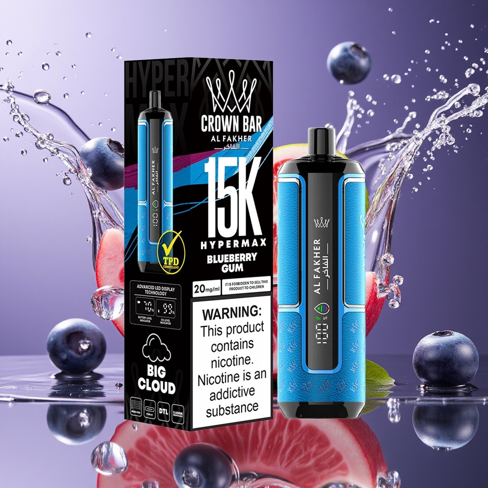 Al Fakher Crown Bar 15K Hypermax Großhandel Deutschland Blaubeerkaugummi